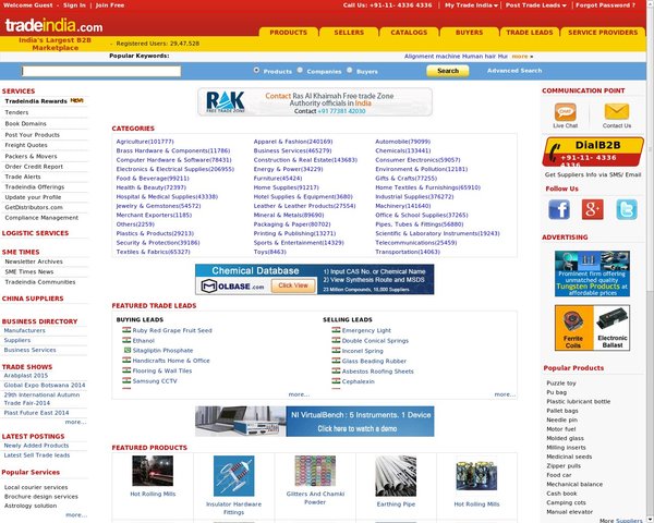 This is a popular site for trade shows and exhibitions among small businesses located in India and the other parts of the world. TradeIndia deals in more than 1200 product categories, the main ones being online business catalogs, trade Alerts, DialB2B, Credit reports, Call Me Free Service and trade leads.